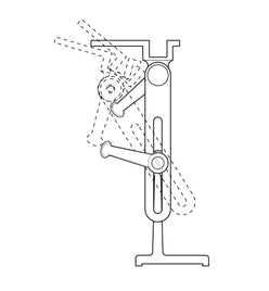The 4" wide table straddles wheels up to 1" wide. It is grooved for sliding jigs and center drilled for rotating jigs. The slotted arms allow a wide range of angular and height adjustments. Spring-loaded gyratory handles lock it solidly in position and can be rotated out of the way after locking. You can easily move it from one grinder to another or quickly remove it from the bench.
