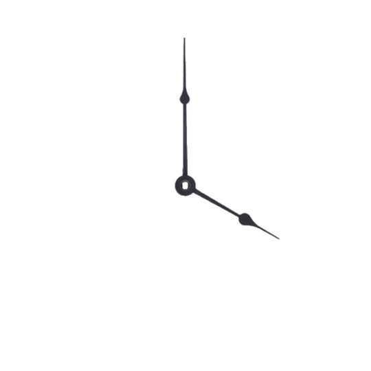 Black hour and minute hands to suit our American made clock movements. The option to include a second hand is left up to the individual, as is the self adhesive Roman Numerals (I, IV, XII) or Arabic Numerals (1, 4, 12). Length of minute hand: 87mmLength of hour hand: 64 mm