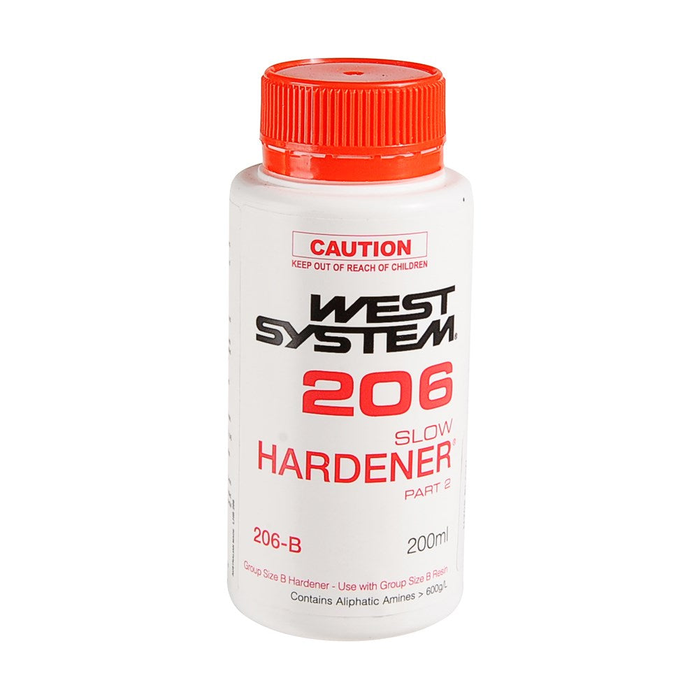 WEST SYSTEM® 206 Slow Hardener is a low viscosity epoxy curing agent that gives longer working and cure times when needed or to provide adequate working time when temperatures are higher.