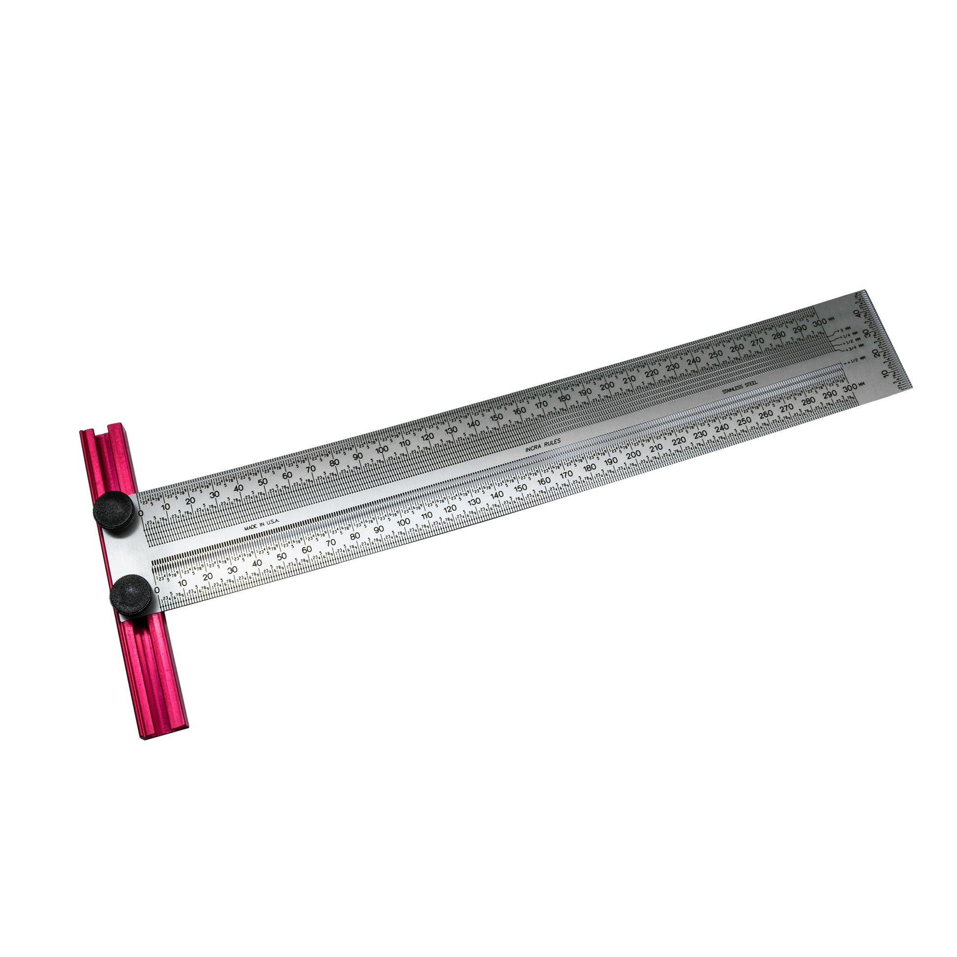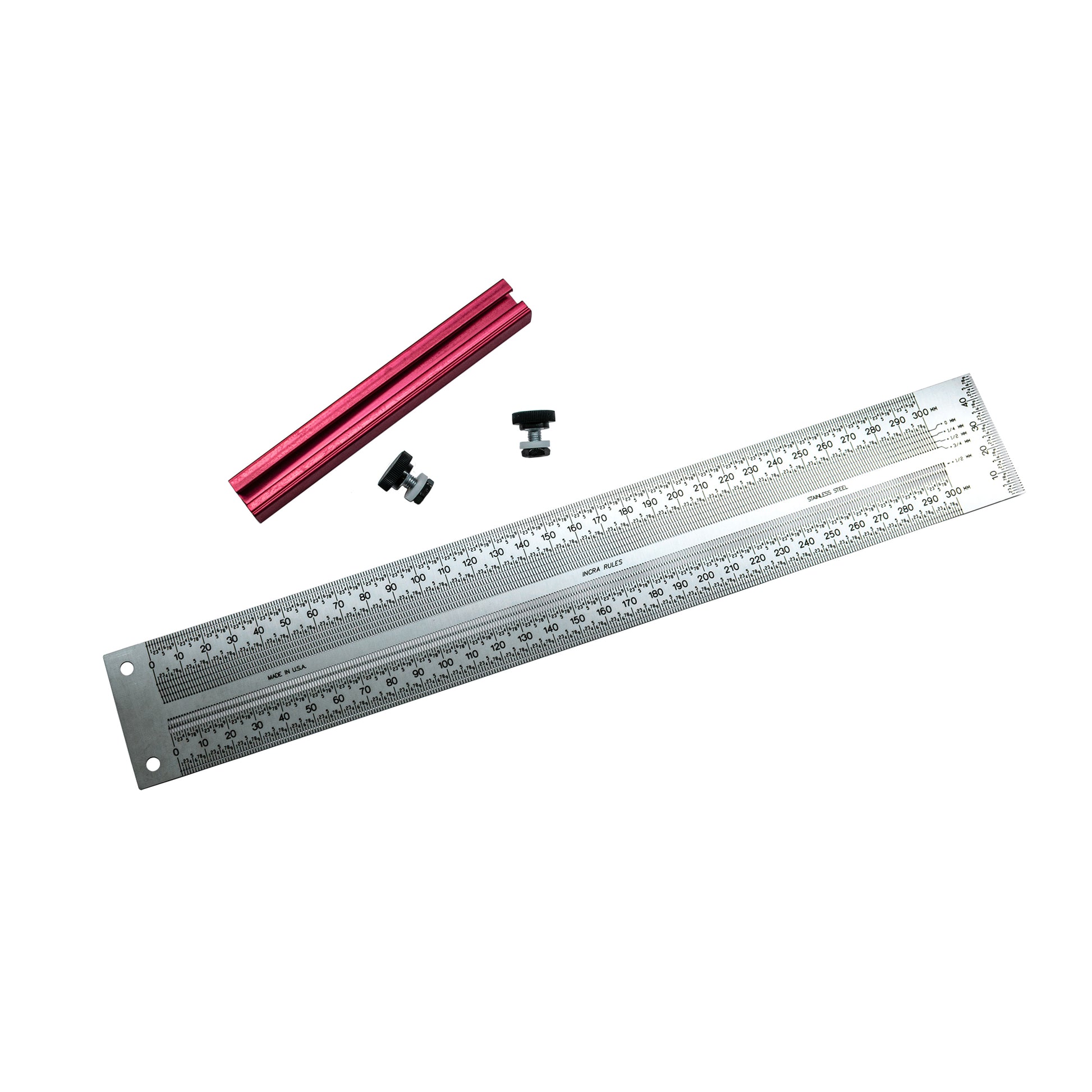 This is our Metric T-Rule shown here is the 150mm version. It is also available in a 300mm length. These rules offer Incra's patented marking holes at every full; 1/4; 1/2 and 3/4mm from 0 to 150mm. They also offer 0 to 50mm height marking slots on the end in millimeters.