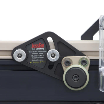 Unique guide rollers mounted on a 5° angle effectively steering your stock towards your fence. This angle causes the roller to hold with more force if the wood tries to move against the direction of the feed.Rollers are fitted with one way roller bearings to ensure each roller spins in the direction of the feed to prevent kickback.Grip force urethane rollers hold your stock securely in positionSet up is fast and easyGuides lock into position along the fence with a twist of the pivot knob and the height setting is controlled with a twist of the clamping knob.For long term routing, the clamping knob is broached to accept a 1/4" hex key to add that extra security you won't lose your settings.Guides mount to a standard 1/4" T-Slot found on most commercially available router table fences.Guides have 69mm of total adjustment.Have complete control of your stock even when routing wide boards or large panels. The dual action of the guides will pull your work tight to the fence. Guides are CNC machined from 6000 series aluminum and anodized for appearance and durability.Roller axles machined from cold rolled steel and case hardened for durabilityRollers designed from wear resistant acetal resinTraction tires are molded out of urethane for long life and superior grip.Accessory kit available for Shop Made Fences
