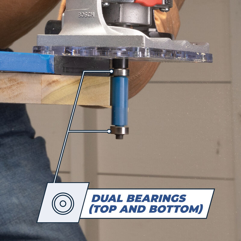 • Dual bearings top and bottom mounted for use in a router table or in a handheld or trim router