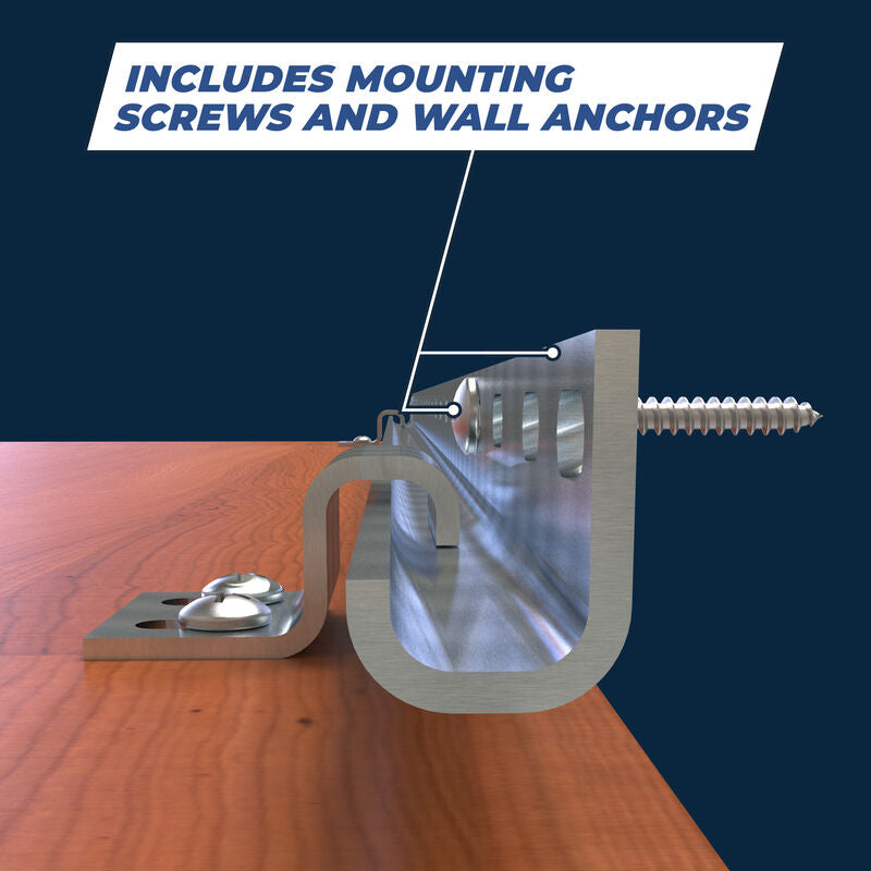 The simple, adjustable cabinet installation system for one-person installation.The 600mm sections of mounting brackets simplify the positioning and installation of wall cabinets by temporarily holding the cabinets in place for you. This system allows you to use brackets to position up to 7.9m of wall cabinets until you can permanently mount them to wall studs. First, mount the steel wall channels to ensure level installation. Next, attach temporary hanging brackets to your cabinets. Then hook the cabinets in place flush against the wall. Adjust and align the cabinets until you've found the exact positioning you want to mount them in permanently, and then you can attach them to the wall studs with ease.