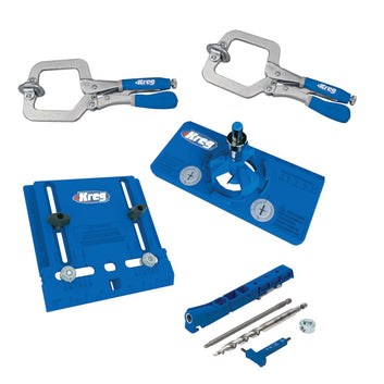 Transform your cabinetry projects with the Kreg Hardware Installation + Pocket-Hole Jig Promo Kit, the complete solution that takes the guesswork out of professional-quality installations. This comprehensive kit combines four essential tools that work together seamlessly: the Concealed Hinge Jig for perfect door alignment, the Cabinet Hardware Jig for precise knob and pull placement, the portable Pocket-Hole Jig 310 for strong joinery, and Classic Face Clamps for secure assembly. Whether you're refreshing your entire kitchen or building custom cabinetry from scratch, this kit ensures every hinge sits flush, every handle aligns perfectly, and every joint remains rock-solid for years to come. No more measuring twice and drilling crooked holes – these jigs guide your drill bit exactly where it needs to go, delivering consistent, professional results every time. Built with hardened steel components and carbide-tipped bits, this kit handles everything from delicate cabinet doors to thick timber frames with precision you can trust.