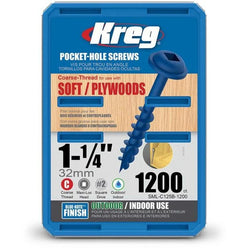 Blue-Kote screws are the best choice for damp or wet applications, and work with treated lumber. Coarse thread screws are used with softwoods - as well as plywood, particle board and MDF. Maxi-Loc Kreg Screws have a large head that provides maximum bearing surface as the screw pulls tight in the pocket.