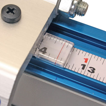 The sturdy made stop fits neatly into the Kreg Top Trak, allowing it to slide into the right position, and make use of the tape measure. The Top Trak is mounted on the top of a fence 63mm (2-1/4") to allow it the ability to move freely laterally, and swing out of the way when not in use.