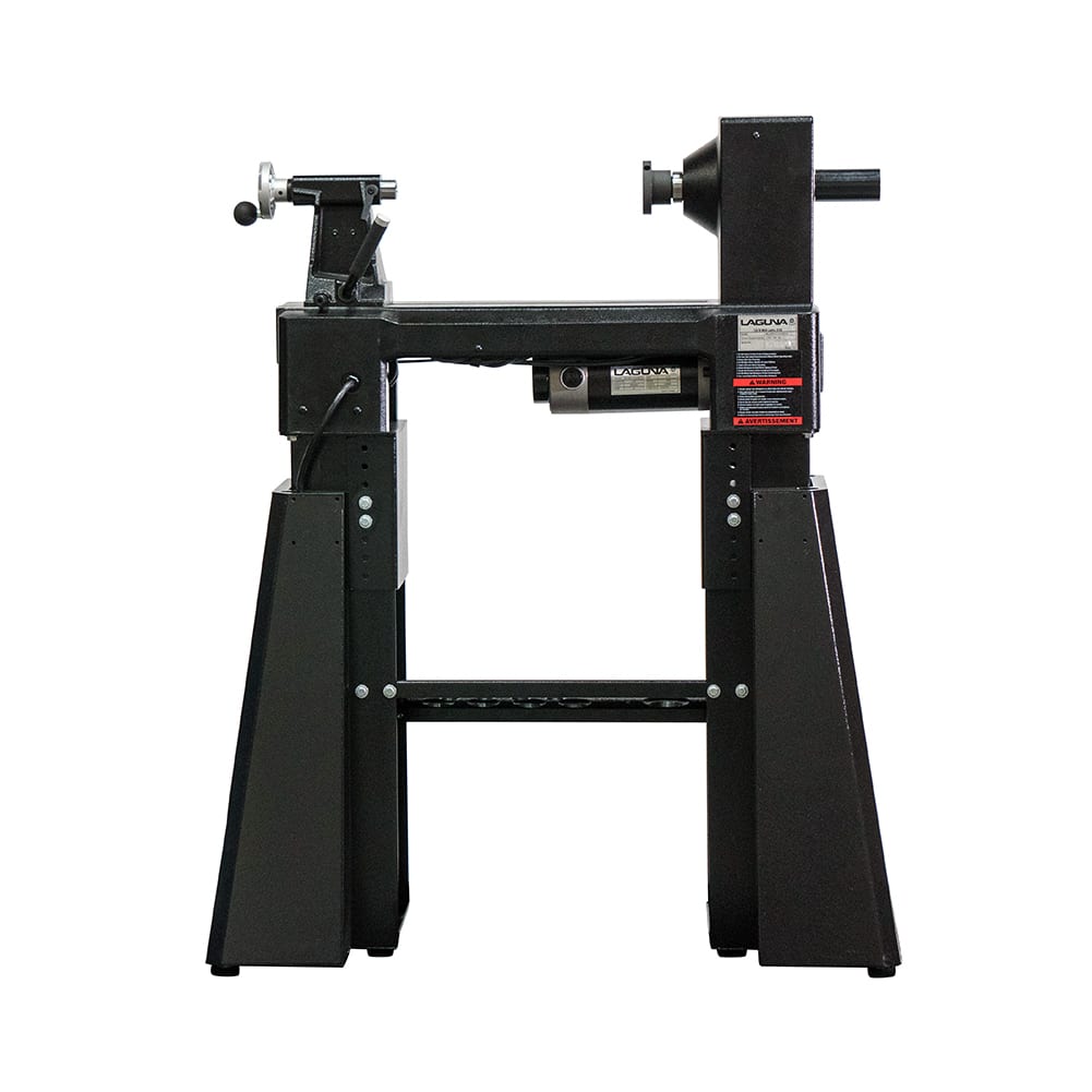 Never has a Midi Lathe been supported this well!This stand has been designed from the ground up, specifically for the Laguna 12/16 Midi-lathe. Adjustable from 990mm - 1143mm (39″– 45″) at spindle center to suit your preference and height. It is extremely robust and well constructed, turning your midi-lathe from a bench-top model into a fully stable compact floor mount woodturning station! Made from a heavy-gauge folded steel, with a wedge-shaped design and featuring an ergonomic tilted multi tool shelf, for keeping your most used tools ready at hand.Net Weight of the stand is a whopping 37kg (81 lbs) alone, making the Revo 12|16 mounted on the stand a combined 90kg (199 lbs). That is a serious, stable and heavy duty midi-lathe!*NB: Lathe shown for illustrative purposes only, not included.