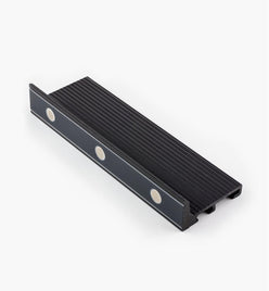 Held against a workpiece with a hand or secured with clamps (not included), it provides a registration surface, about 1 1/4" tall, to help maintain accuracy throughout the cut. The machined reference face has three embedded 1/2" dia. rare-earth magnets and is covered with a strip of low-friction UHMW tape. The magnets help maintain tool contact with the guide while the tape allows tools to glide along the reference face.