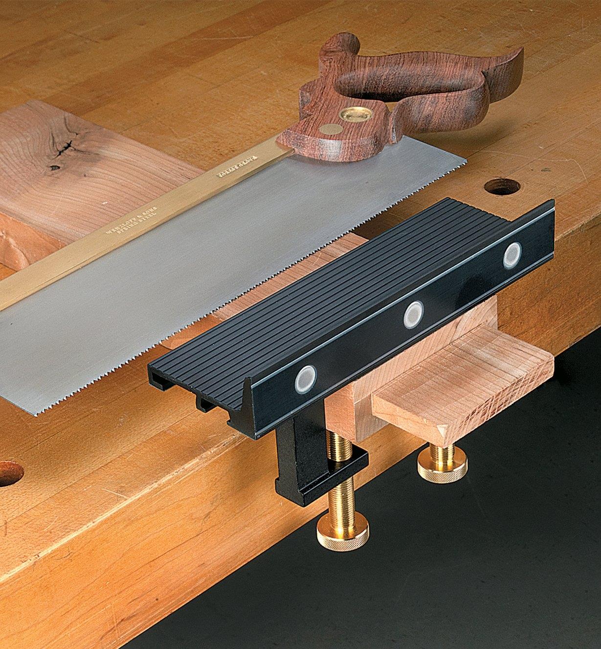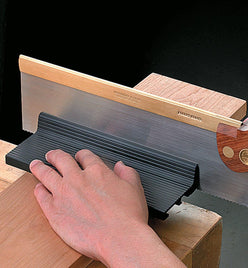 These anodized aluminum guides help keep a saw square to a workpiece. They are particularly useful when crosscutting tenon shoulders or defining the edges of a dado, since the guide helps a backsaw track straight and true.