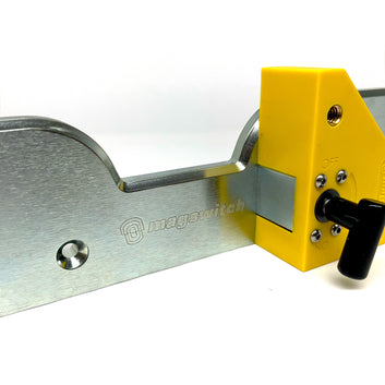 NEW from Magswitch - a Magnetic Drill Press Fence!Made from a solid piece of steel, machined all round for an ultra-flat and square surface. The fence is supplied with 2 Magswitch toggle activated magnets, that can be adjusted in their mounting positions via the multiple drilled holes, to suit just about any width of table. They also feature a rubber grommet underneath that provides some cushioning and friction to the attachment, for a very secure lock.The fence is designed with a cutaway centre, to allow for clearance of the chuck when drilling close to corners and edges. Also included is an infinitely adjustable stop, for repeat drilling operations. This is also actuated via a Magswitch toggle and as the fence is steel, can be positioned anywhere you need on the face. With both 90˚ and 45˚ faces, setup for just about any repeat drilling operation is simple.Dimensions are : 330mm x 63mm x 11mm (Steel Fence excluding the Mag-jigs and Repeat Stop)A deceptively simple yet exceptionally functional, easy-to-use, premium fence offering to upgrade your drill press. Also available in a larger format, especially suited to large drill press machines.*NB: Drill Press not included!!
