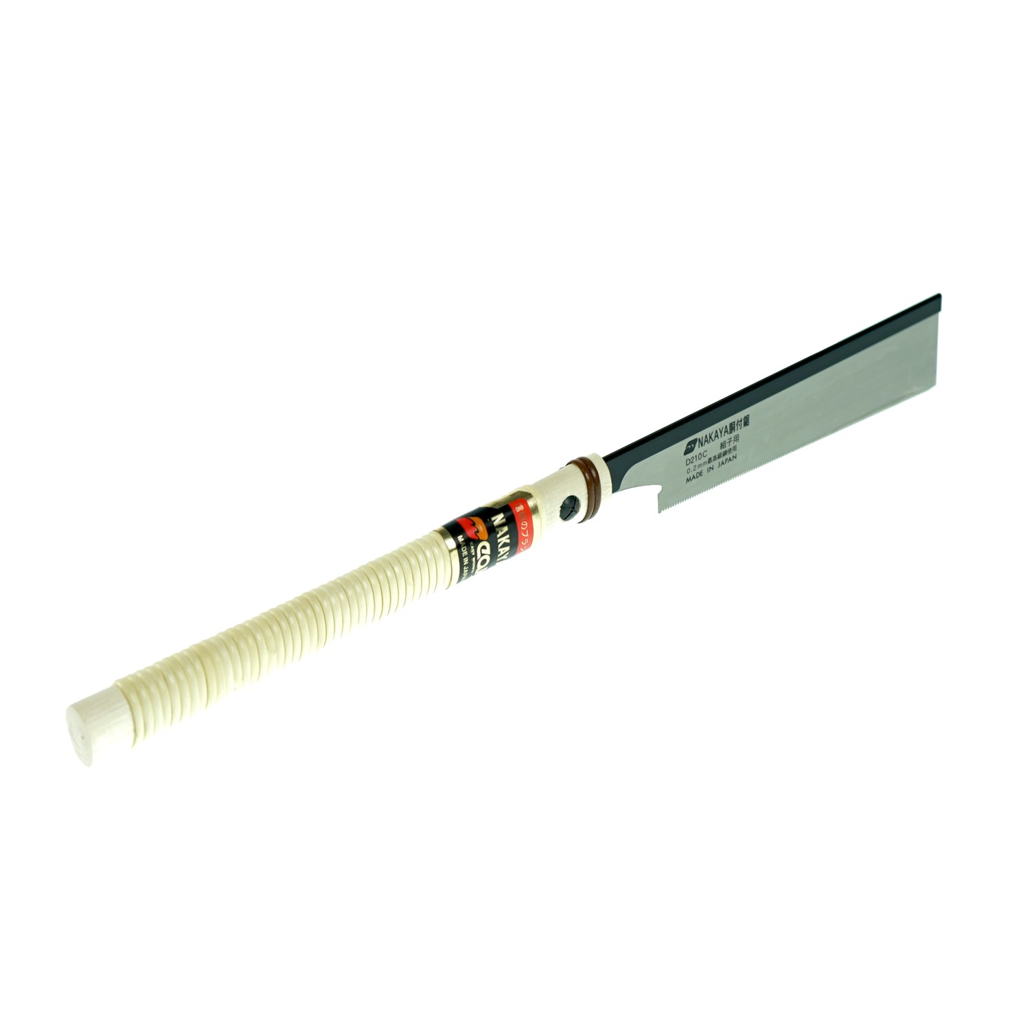 This premium Nakaya Dozuki saw is for precision fine cross cut joinery work.It features an ultra thin 0.2mm blade stock and 0.3mm kerf for razor sharp cutting. The rigid spine prevents distortion of the blade during use making it excel at cutting dovetails, Kumiko or any fine joinery work. Jewellery, box-making, luthiery - wherever fine precision cutting is required.The hardened Japanese style faceted teeth cut extremely efficiently on the pull stroke with little effort. This model has a 210mm blade which is fully replaceable, set in a traditional rattan wrapped timber handle.A joy to use.