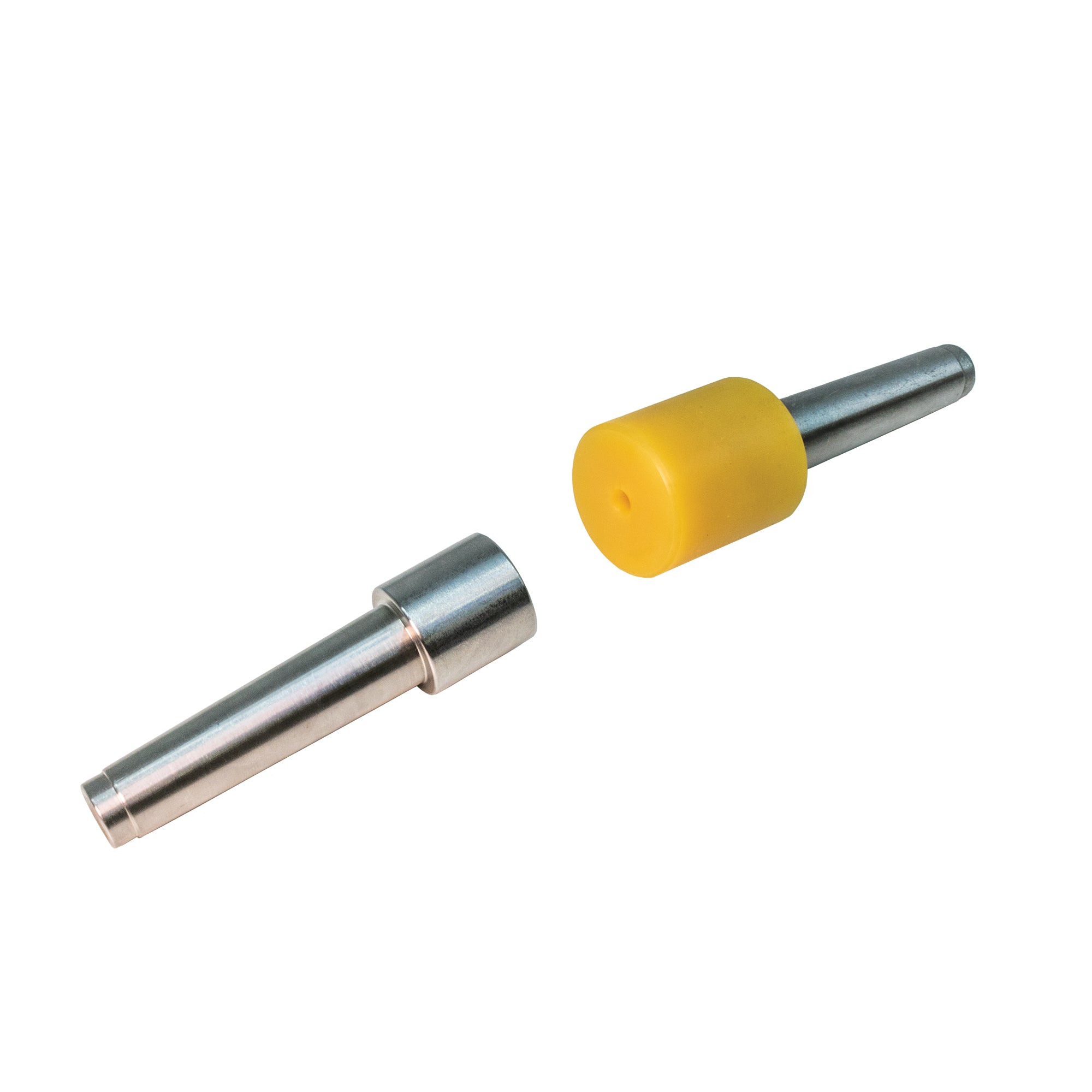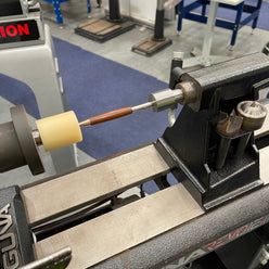 This easy-to-use tool requires a #2MT headstock and tailstock openings of your lathe, nothing more. Simply use your own lathe to press your pen parts together perfectly straight every time. It is just like a pen assembly press station where one part is a hard plastic with a center hole for pen tips. Ideal for pressing longer pens or anything up to the maximum spindle length you lathe can handle.