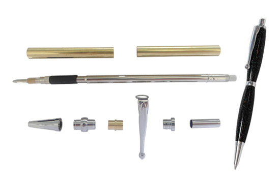 New Fancy Slimline Pencil Kits (PEN-7 series). These pencil kits offer some of the best value on the market and come with a chrome plated finish. This new Fancy Slimline Economy pencil kit includes an attractive ball clip and oriental style band. Note, Sold as a pack of 5.