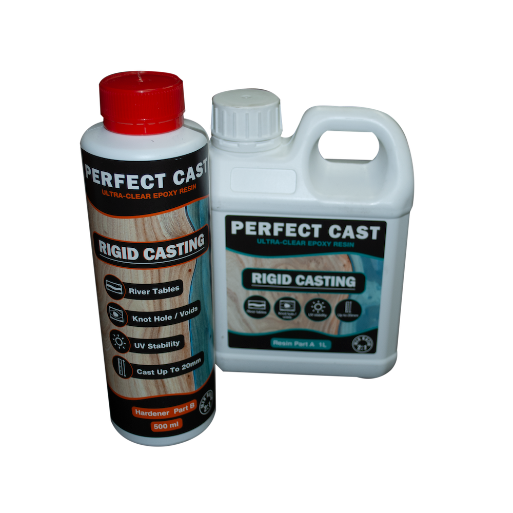 Perfect Cast / Rigid is a solvent free, liquid epoxy resin system specifically designed as a crystal clear, high-gloss rigid casting system that will self-level. and cure at room temperature.Kit contains 1 litre of Resin and 500ml of Hardener. Perfect for River Tables.