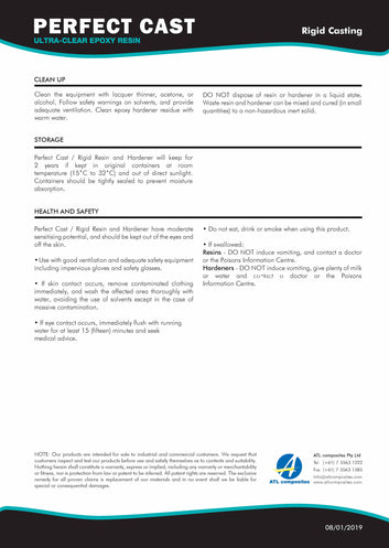 Perfect Cast / Rigid is a solvent free, liquid epoxy resin system specifically designed as a crystal clear, high-gloss rigid casting system that will self-level. and cure at room temperature.Kit contains 4 litres of Resin and 2 litres of Hardener. Perfect for River Tables.