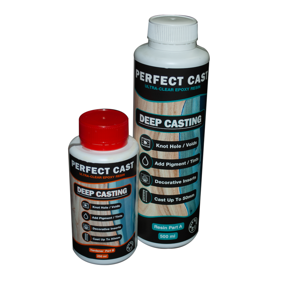 Perfect Cast / Deep is a solvent-free, liquid epoxy system designed to create thick, crystal clear, high gloss castings in Timber.Kit contains 500ml of Resin and 250ml of Hardener.The ATL "Deep" resins are NOT designed for "river tables", they are only designed for "knots and voids". For "river tables", purchase ATL "Rigid" resin.