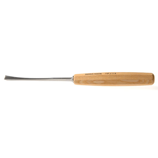 The Number 7F is a straight shafted fishtail chisel with a thin and light blade that has a medium profile, to easily reach difficult areas as the cutting edge is broader than the shaft.