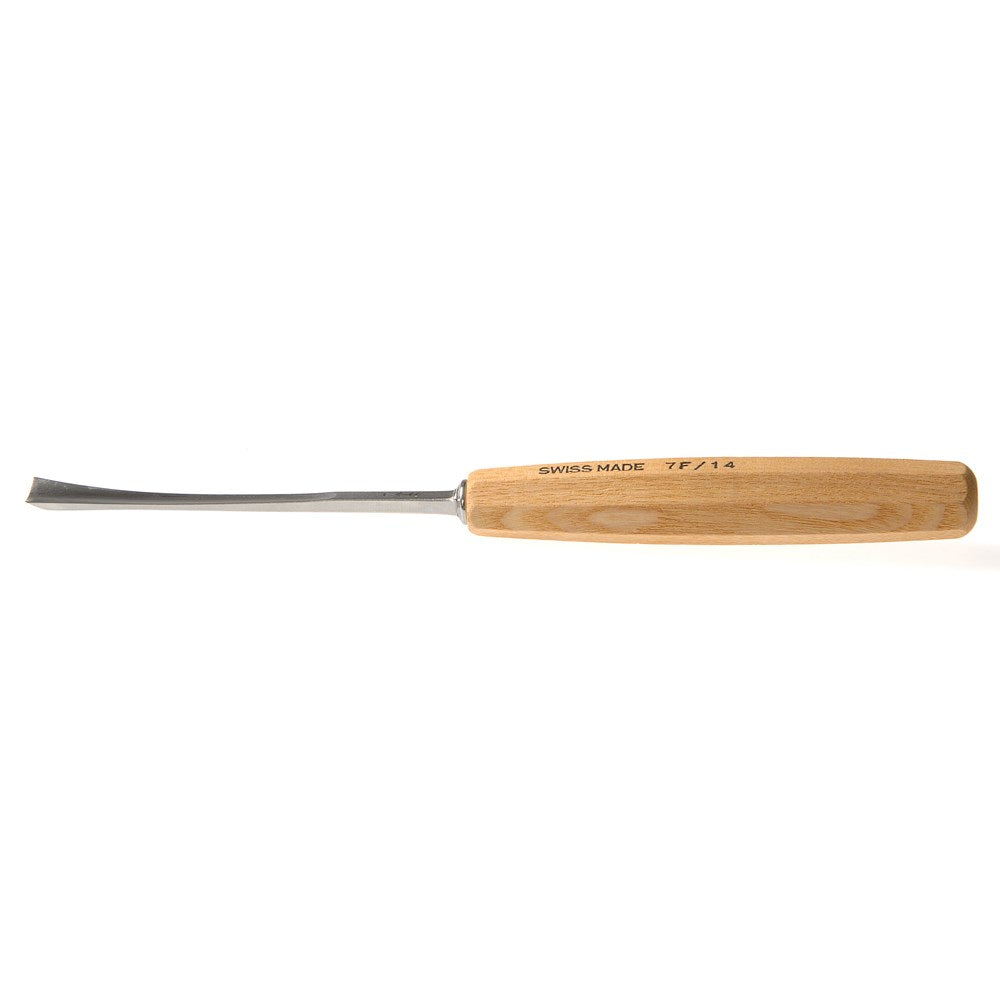 The Number 7F is a straight shafted fishtail chisel with a thin and light blade that has a medium profile, to easily reach difficult areas as the cutting edge is broader than the shaft.