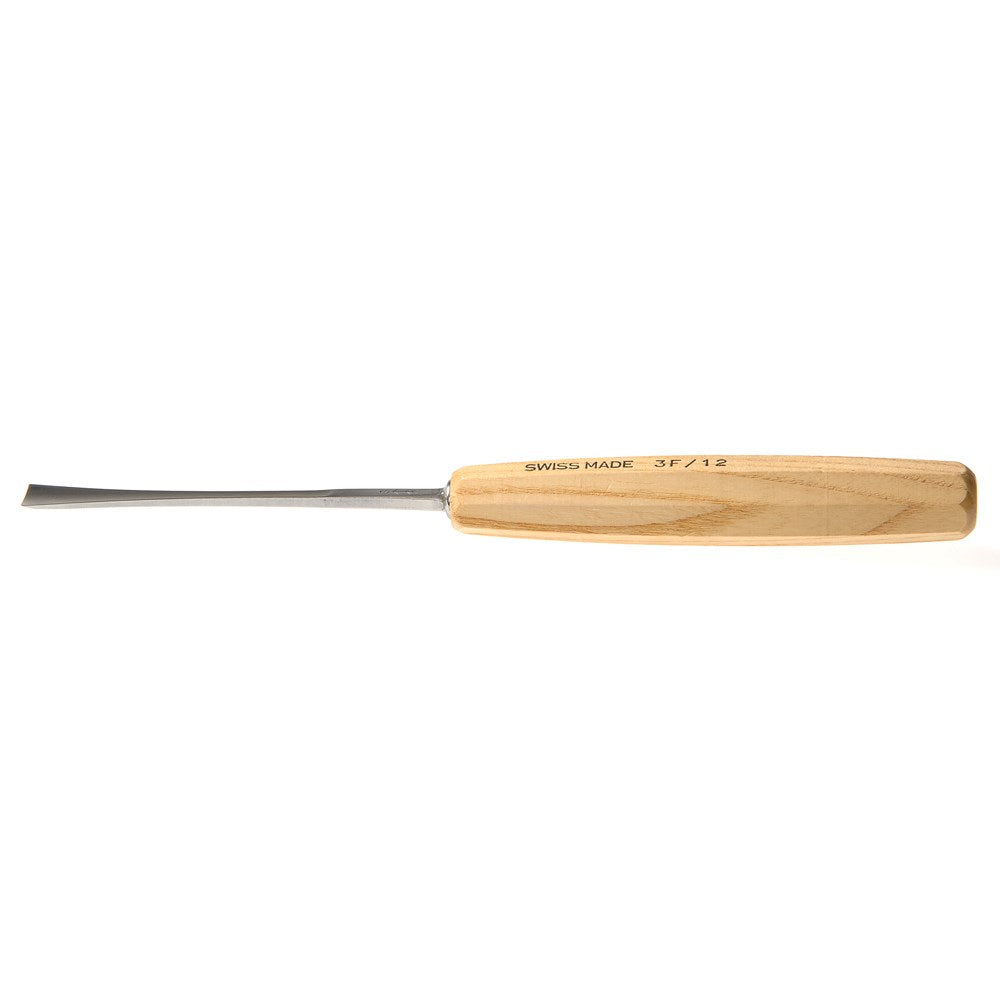 The Number 3F is a straight shafted fishtail chisel with a thin and light blade that has a shallow profile, to easily reach difficult areas as the cutting edge is broader than the shaft.