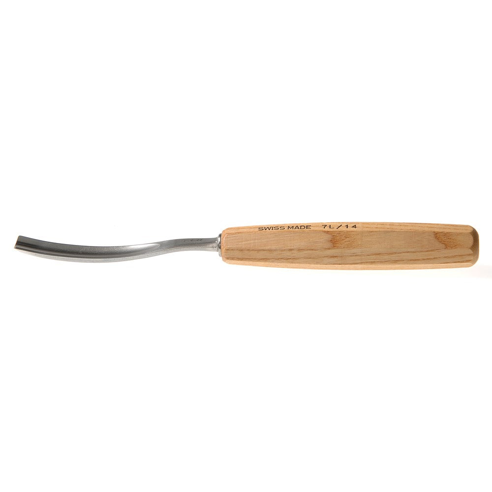 The Number 7L longbent chisels have a gradually curved shank, and medium gouge profile for shaping recesses and working in corners.
