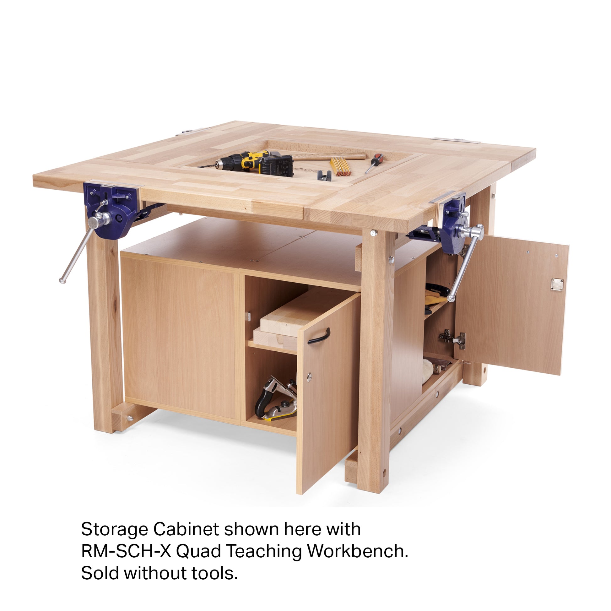 This lockable storage cupboard provides a convenient location to store tools when not in use. Put two together underneath Quad Teaching Workbench or Square Teaching Workbench, and there is a cupboard for each workstation.