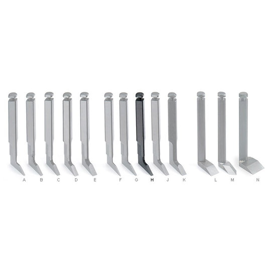 Veritas has identified a need for a range of blades from as narrow as 1/16" through to 1/4", in both Imperial and Metric measurements. An additional straight and spear point blade at 1/2" and a two piece straight blade at 3/4" are available for those larger and wider rebates and trenches.