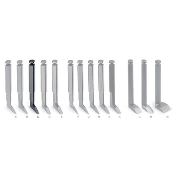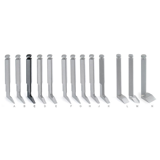 Veritas has identified a need for a range of blades from as narrow as 1/16" through to 1/4", in both Imperial and Metric measurements. An additional straight and spear point blade at 1/2" and a two piece straight blade at 3/4" are available for those larger and wider rebates and trenches.
