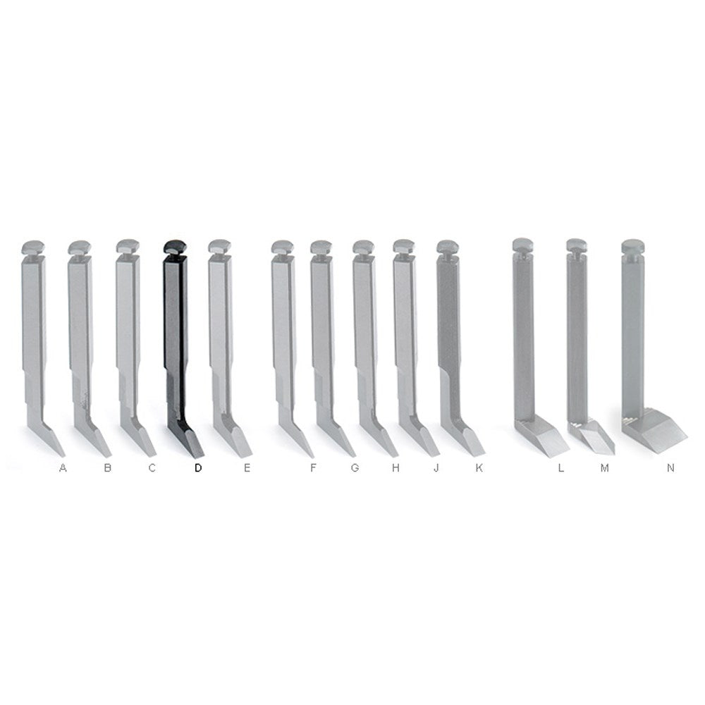 Veritas has identified a need for a range of blades from as narrow as 1/16" through to 1/4", in both Imperial and Metric measurements. An additional straight and spear point blade at 1/2" and a two piece straight blade at 3/4" are available for those larger and wider rebates and trenches.