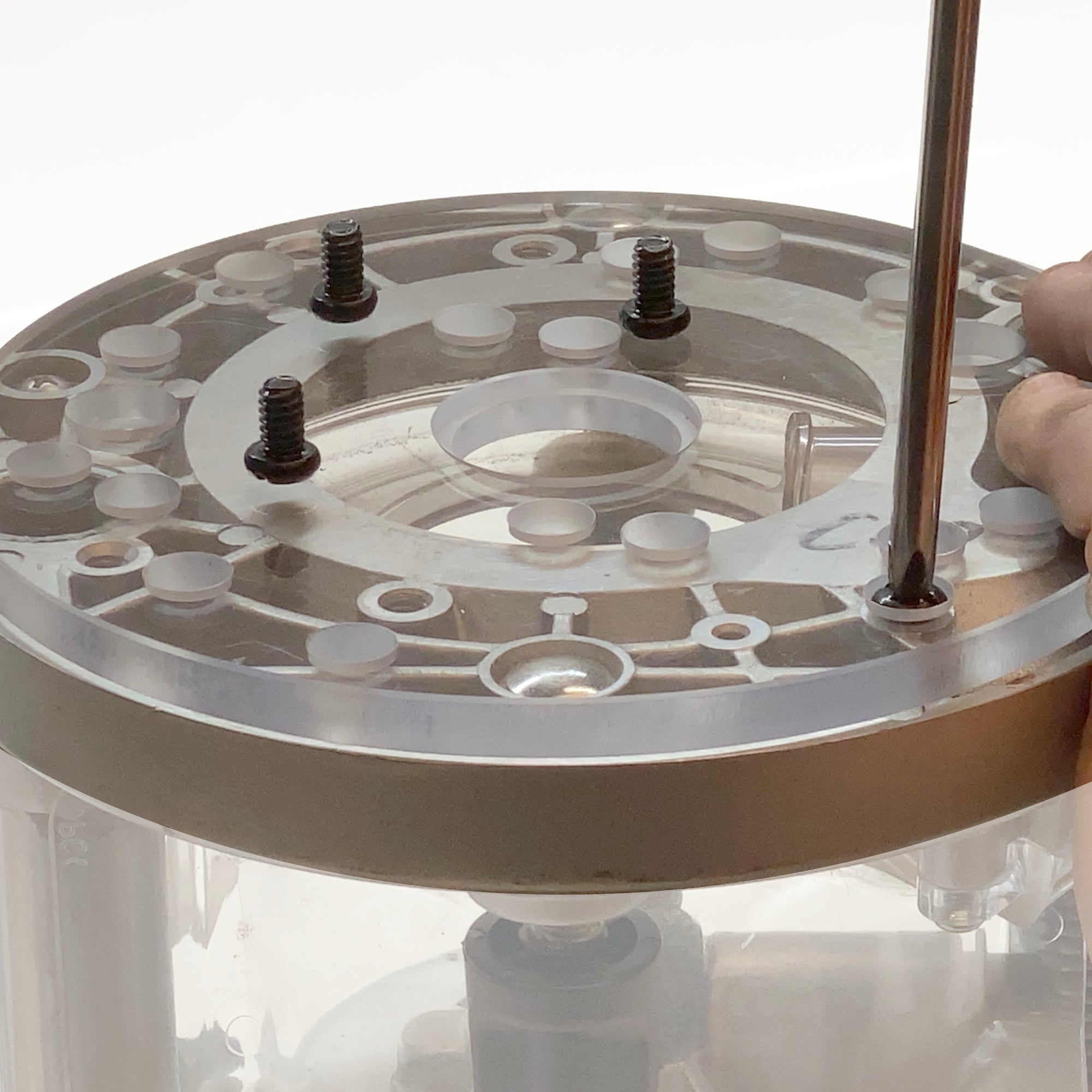 Guide bushes are used as an alternative to a router bit with a bearing. Smaller bearings can seize, and therefore cause damage to the workpiece. A router bit with a bearing is limited by the position of the bearing in relation to the height of the cutter and the required cut. A guide bush has a fixed position, with the router bit able to move up and down independent to the guide bush. Many commercially available jigs use a guide bush that runs against the jig. The Base Plate Adaptor plate has a rebated 30 mm hole, this allows the guide bush to be fitted so the guide only protrudes below the base of the router, to run against the template. Many routers lack the ability to mount guide bushes, or only have a limited range of bushings available. The Carbatec CT-BPA-1 allows the fitment of the widely available 30 mm threaded bushes used with Carbatec, Leigh, CMT and many other specialty jigs. Note: Template Guide Bush shown not included.