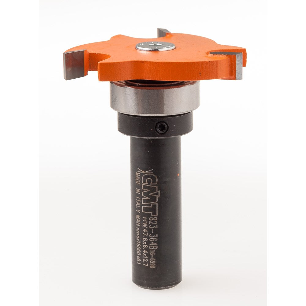 Use the CMT slot cutter to rout grooves and rebates, T-slots or the relief to start dovetail joints on wood panels. Each bit features three carbide-tipped cutters, orange coloured PTFE coating and anti-kickback design. The 22mm (7/8") bearing is included for a cutting depth of 12.7mm (1/2"). The bit and the slot cutter are available also separately.