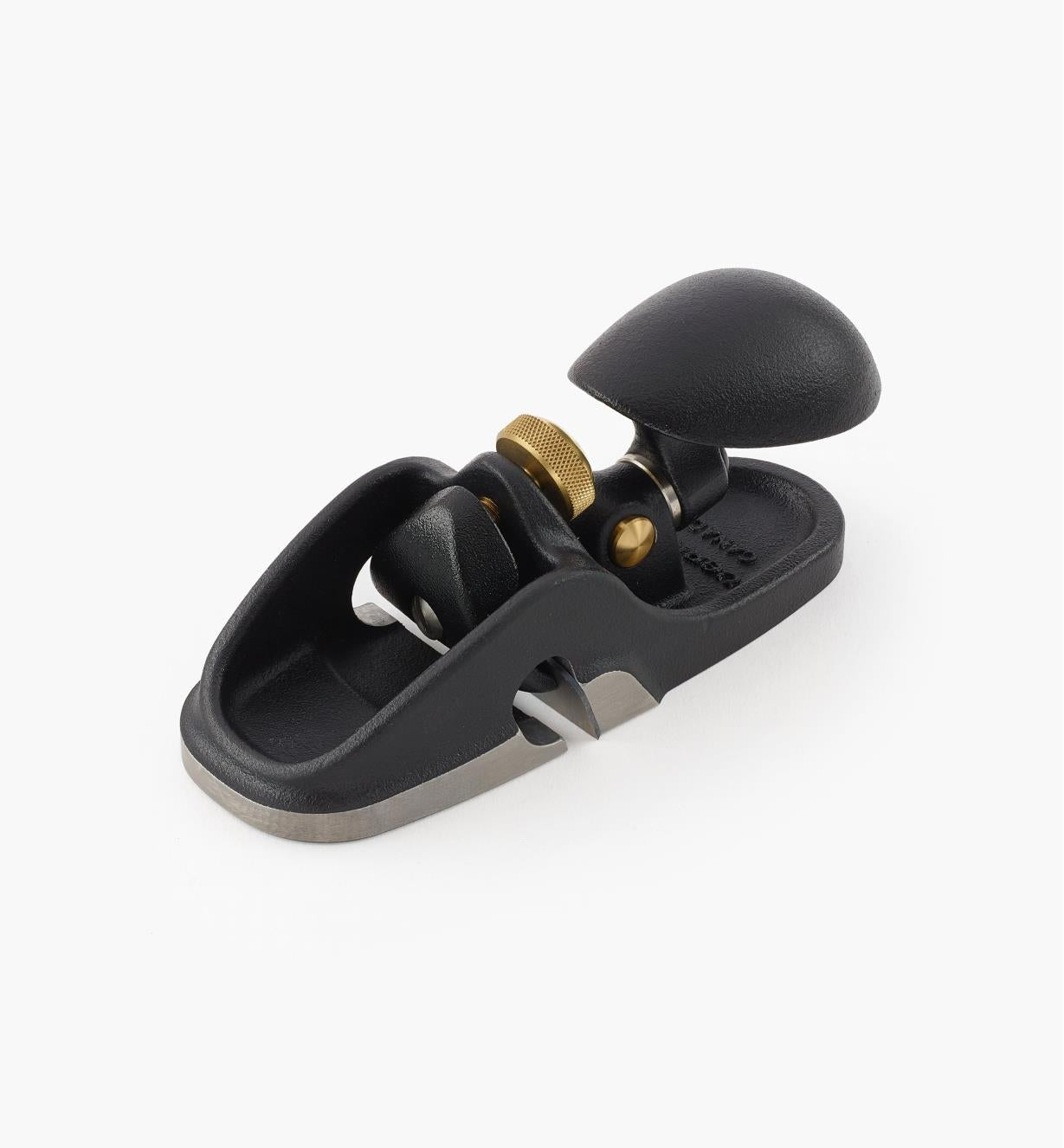 A fixed frog sets the blade at 20°, the optimum angle for fine scraping. The edges of all gripping surfaces are chamfered for comfort, as is the leading edge of the lapped sole, preventing it from catching or marring work. The 5-1/4" (133mm) long ductile cast iron body weighs 680g.