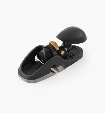 Designed for foe use with one hand, this small scraping plane has an articulating palm rest for comfortable, controlled grip. This allows it to be positioned to suit your preferred grip in either hand, or for knuckle clearance when working close to an adjacent surface.