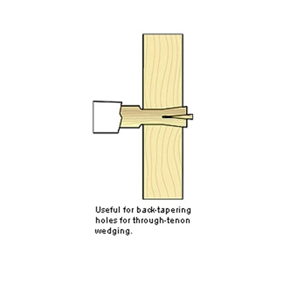 First-time Windsor chairmakers will find the large reamer (3/16" to 1 3/16") indispensable for tapering leg sockets. The bits are 3 3/8" and 5 1/2" overall respectively with a 5/16" hex shank. The included angle of 12.8° on both reamer bodies matches the tenons made with the Veritas Tapered Tenon Cutters.