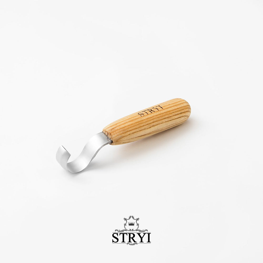 Great for carving soft and hardwood spoons! These knives are only sharpened on one side to allow extra control on backside of blade. RH knife, shown in image(s), sharpened on left side when viewing the STRYI brand mark.