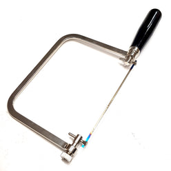 A heavy duty coping saw frame, with Timber handle coated black. The blade can be rotated 160° for versatile cutting.Suits 6.5" Coping Saw blades, such as those offered in our Pegas Coping Blade range. Comes with one blade mounted. *NB: Requires 6.5" pinned Coping Saw Blades, not regular scroll saw blades.