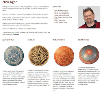 The Texturing Tool enables the turner to alter the visual and tactile qualities of a work piece by creating striations, whirls, an orange peel effect and more.Woodturner Tracy Owen has won many prizes with his textured bowls. The unique Robert Sorby Texturing Tool allows every woodturner to share his secrets by giving their work that added value and individuality which these effects bring.The Texturing Tool enables the turner to alter the visual and tactile qualities of a work piece by creating striations, whorls, an orange peel effect and more. Let your imagination run wild.Fitted with an interchangeable cutter, the Texturing Tool is just as effective on soft as on hard woods - although the result can be markedly different. The Robert Sorby Texturing Tool not only brings turned pieces to life, it gives hours of pleasure. The below linked article shares more information:https://www.carbatec.com.au/article/741/examples-from-the-robert-sorby-texturing-tool