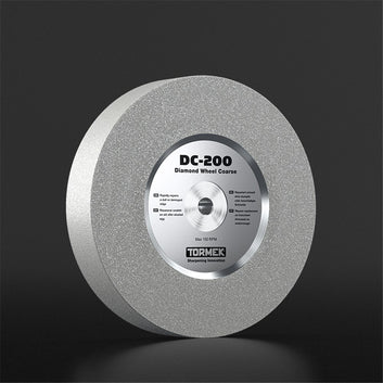 Designed to provide effective sharpening and rapid repair of dull and damaged edges this diamond wheel can be used on almost any type of material - including steel, ceramic and carbide. The DC-200 allows for sharpening on the side to get a completely flat bevel while maintaining its shape and diameter. Featuring a grit size of 360 this durable diamond wheel is the best choice for fast steel removal and tool shaping.
