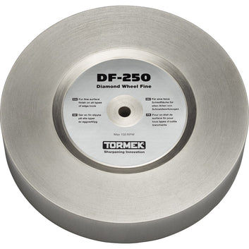 The fine diamond wheel from Tormek has a grit equivalent of 600, is an all round wheel combining removal of steel to providing a smooth finished surface. Materials such as steel, ceramic and carbide can be sharpened using the new diamond stone range, and can be mounted to the current T-8 model, previous T-7 model and earlier models that use a 250ml diameter wheel. The diamond stones give the same grind as the water stones using the outside edge, without the need to truing and as a result will not reduce in diameter, with the added benefit of being able to sharpen using the face of the wheel and achieving a flat grind previously not possible with the water stones, using the new MB-100 Multi Base.Included with every wheel is a 150ml bottle of anti-corrosion concentrate to prevent rust forming on the grinding wheel, use this in a 10ml to 250ml ratio.