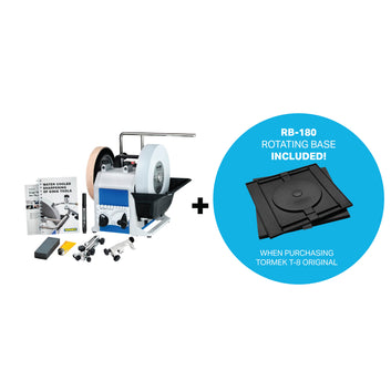 The Tormek T-8 with bonus RB-180 Rotating Base is designed for serious woodworkers who value precision, efficiency and performance. Together, they deliver a seamless sharpening experience that keeps your tools perfectly honed and ready for any project.