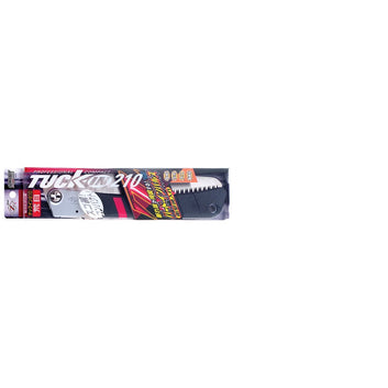 This Japanese "Tuck In" is otherwise known as a folding coarse pruning saw. The body of the saw is made up of a Elastomer skinned aluminium die cast compact grip with a sharply ground blade. This pullsaw has a universal cutting action so it is perfect for gardeners, fruit tree growers and aborists alike. This saw also features to different angle settings when locked open for use. These saws are hardened through the "Hard Impulse" treatment to increase the degree of hardness to the level of HV800-950 which is the maximum hardness that can be achieved on steel. Implementing this treatment on the tips of the saw teeth means that they are able to stay sharp much longer than conventional counterparts while the core of the blade remains both flexible and tough to prevent bending or buckling during use.