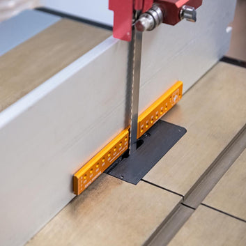 UJK's Bandsaw Buddy is a unique bandsaw blade aligning tool, Made in Axminster UK!The Bandsaw Buddy is a handy tool that allows you to check the alignment of the bandsaw blade to the face of the fence. Truing the fence to a blade can be a tricky job. The Bandsaw Buddy simplifies this - two rare earth magnets hold the tool firmly on the blade, with an additional recess for the set of the teeth, providing a true reading off the blade. At 250mm long, it is an easy task to then spot any discrepancy in the fence alignment and make necessary adjustments. Aligning your fence to your blade allows for even and consistent cuts.The handy magnets will also keep it safely stored on the bandsaws frame when not in use, while a scale on the tip helps set the bandsaw fence width for cutting veneers or thin boards. Holes along the Buddys length at 12.5mm intervals allow you to draw arcs or circles in 25mm steps from 75mm to 400mm, a useful feature for marking curves or when cutting bowl blanks.Accurately machined from anodised aluminium, it also makes a handy straight edge.An all-round useful tool, specifically for bandsaw use! Hence the name