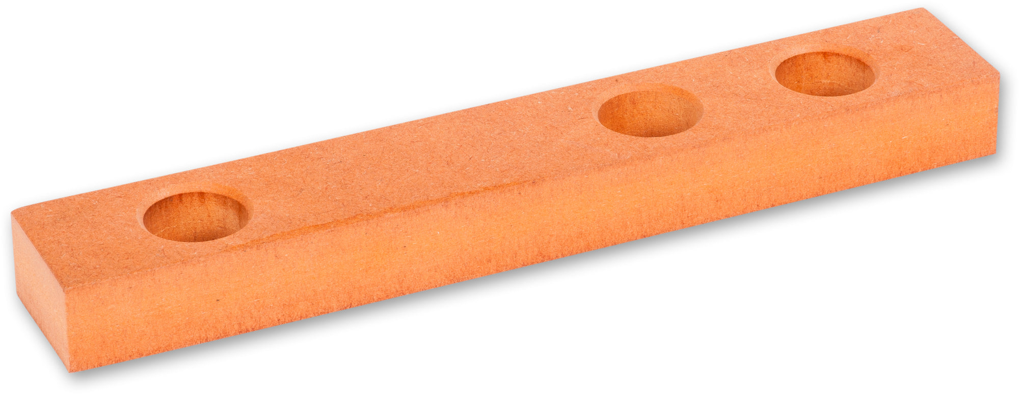 Use on any multifunction table with 20mm holes at 96mm centresCNC machined from durable, HDF ValchromatUseful stop or assembly aid200mm long x 30mm wide x 20mm thick3 dog holes allow straight or diagonal placementAll 20mm holes are chamferedMade in the UK