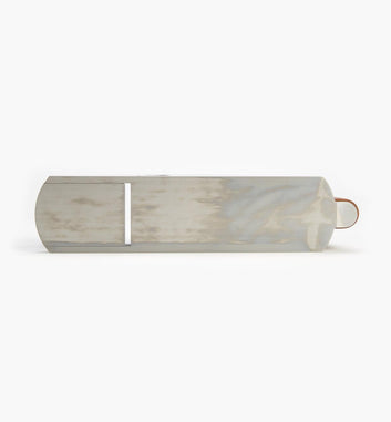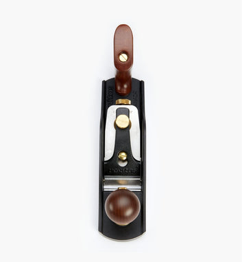 With a bed angle of 12°, this is a bevel-up plane. It features an adjustable mouth with a unique stop-screw, a combined feed and lateral adjustment knob for blade setting, and a hardwood front knob and rear handle.