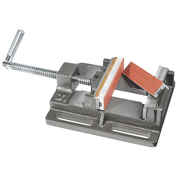Laterally expanding and contracting vise specifically designed for use on drill presses. Width of 4inch (100 mm). Soft jaws shown in photo sold separately.