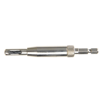 A fast and accurate drilling tool that self-centres. Saves time drilling holes for hinges and striker plates. The outer casing retracts when the Vix bit is inserted into the countersunk hole. The drill bit is then positioned in the centre of the countersunk hole; allowing you to position your hardware with a high degree of accuracy.