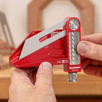 Whether you're marking dovetails, taking off an angle from an antique, or transferring an angle from a plan, you want a bevel gauge that adjusts easily, locks firmly and won't move again until you want it to. Woodpeckers Sliding Bevel Gauges feature a unique locking mechanism that delivers precisely adjustable drag and positive locking from the end of the tool. The locking knob fits naturally between your thumb and finger and provides positive feedback for tension adjustment. Internally, a wedge multiplies your effort, exerting firm gripping pressure on the blade with only moderate finger pressure.