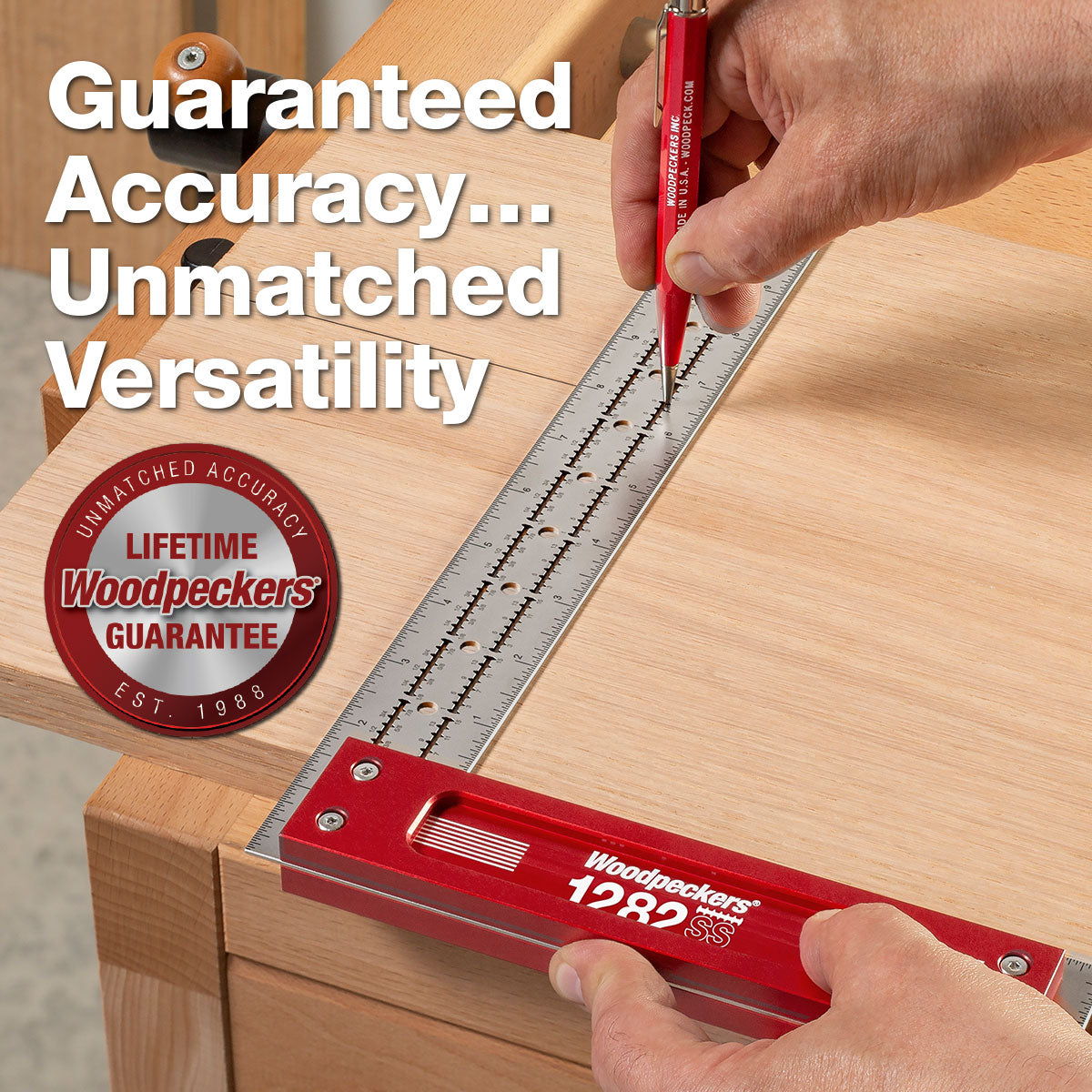 The squares stand upright without a hand, giving you both hands to dial in the height of your router bit, saw blade or dado stack. These squares are guaranteed to be within .0085. To put that in perspective, on the 1282SS, the maximum error you could find at the far end of the square would be about half the thickness of a human hair. Also available in 300mm metric version.Note that some images serve as range illustrations and may not reflect the actual models and quantities. For an accurate depiction, see the first image on a white background.