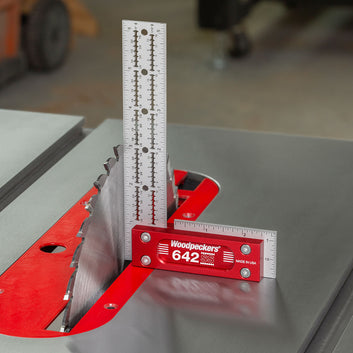 The 1/16" thick blade gets heat-treated and tempered, ensuring strength and stability. Finally, they're bead blasted to create a non-glare finish that contrasts nicely with the laser-engraved scales. Like Woodpeckers' famous aluminium squares, the cheeks added to the central core are narrower, forming a shoulder that keeps your square registered to your stock even when you let go. You'll love using the stainless-steel squares for lay out work. First, the scales are laser-engraved to a tolerance of .004".