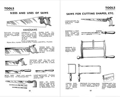 Angles, bisecting, 16Appliances, 84Arches, 21Areas, 23Beetle. wood boring, 63Bits, 80Bleaches, 3Bolts, 34Boring tools, 80Castors, 37Chemicals, list of, 7Chippendale mouldings, 94Chisels, 78Cramps, 83Creams, furniture, 5Dry rot, 64Ellipse, drawing, 12, 14Equivalents, mm. and inches, 51Fibre boards, 87Files, 77Fillers, wood, 4Fittings, 34French polish recipes, 1Furniture creams, 5Furniture sizes, 65Gauges, 79Geometry, useful, 12Glass, 87Glues, 38Hammers, 78Hardwoods, 57Hepplewhite mouldings, 96Hexagon, drawing, 15Hinges, 35, 36Institutions, wood technology, 42Jacobean mouldings 92Joints, 102Laminated board, 50Lathe data, 89Limed oak, 5Locks, 34Lubricants, 6Metal fittings, 34Mitres, 24Moisture content, 11Monarchs, English and French, 91Mouldings, 92Nails, 28Octagon, drawing, 16, 17Oilstones, cleaning, 6Old woodwork, 100Period furniture, 90Pests, wood, 63Pitches, plane, 86Plane pitches, 86Planes, 71Plastic boards, 87Plywood and laminated board, 50Polishes, etc., 1Quatrefoil, drawing, 21Recipes, non-slip, 5Recipes, wood finishing, 1Revivers, polish, 4Routers, 77Saws, 68Scales, 108Screwdrivers, 82Screws, 31Sharpening data, tool, 85Sheraton mouldings, 98Sizes of furniture, 65Softwoods, 56Spokeshaves, 77Squares, 79Stains, 2Stays, 37Stoppings, 6Strippers, 4Strop dressings, tool, 5Tables, 41Terms, timber, 46Timber, how measured, 43Timber terms, 46Timbers, list of, 56Timbers, world map, 54Tool sharpening data, 85Tool strop dressings, 5Tools, 68Trefoil, drawing, 22Walnut mouldings, 93Wax polish recipes, IWood fillers, 4Wood pests, 63Woodwork, old, 100Worm, wood, 63Veneers, 52