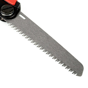 Two New Twin Blade Pocket Folding Saws from Topman!Featuring a sturdy and comfortable rubberised grip, these saws fold down to just 160mm in length - easy to fit in a pocket or tool belt, let alone your tool box. Open they measure 280mm overall with a 120mm blade and offer a very handy saw to have on hand for those odd jobs in the garden or work site. With the blade edges folded safely back in the handle, there is no risk of damage during storage or transit. The blade locking mechanism is simple and positive and features two positions for cutting versatility.This 'Red' model features two blades - an aggressive "Pruning" style blade and a finer set general purpose "Woodworking" blade. Both are used in the traditional Japanese Pull-stroke, and will cut efficiently and quickly.An economical and useful tool to add to your kit.
